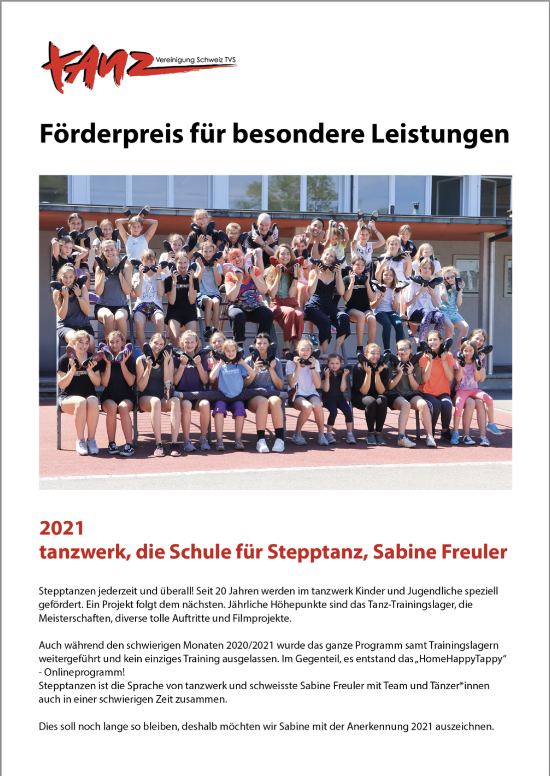 Wir freuen uns riesig über die Auszeichnung der Tanzvereinigung Schweiz :-)